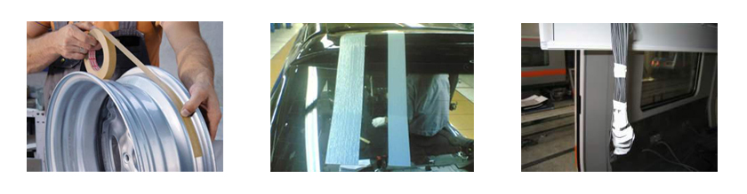 美纹纸应使用在滤波电玻璃容器自动化电气元件,带状标签印刷用;与人造革纸带配合默契施用;适应使用在漆料之喷出施工或所有一般的水性油漆之边缘使用;喷粉、喷漆、电镀之屏蔽,线路版(PCB)制作,设备货品隔绝,变电器、磁圈等。
